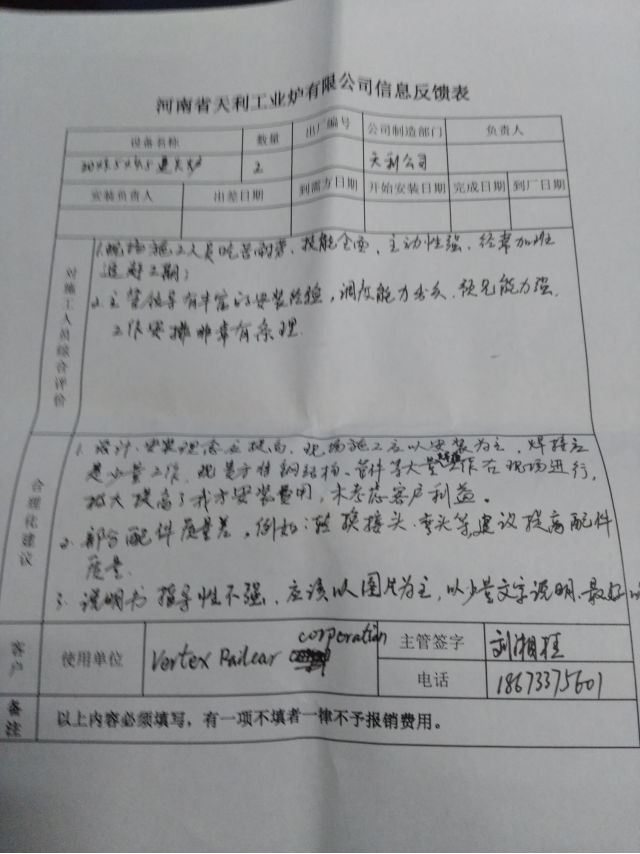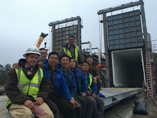 本工程9月20日接到VRC郵件正式通知,要求25日到達(dá)威爾明頓,現(xiàn)場確認(rèn)地基數(shù)據(jù)后,計劃10月3日開始澆筑基礎(chǔ)地基,我公司按照對方計劃安排購買了9月25日王振廣到達(dá)、其余5人10月7日到達(dá)的機票,由于7日颶風(fēng)影響及土建承包商拖延工期致使?jié)仓r間由原計劃10月3日澆筑拖延到10月18日,到10月20日現(xiàn)場施工才開始進(jìn)行,公司團(tuán)隊現(xiàn)場克服種種困難想出多種辦法追趕工期,終于在11月15日按照原計劃先期回國3人,23日完成了部分動作及點火調(diào)試,由于VRC公司沒有成品油罐車及需要建造防雨棚無法進(jìn)行帶料熱調(diào)試,我公司人員于11月25日回國。
