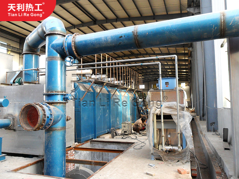 熱處理調質生產線由裝卸料臺,加熱爐系統,淬火系統,快速降溫室(淬火除油室及排煙)系統,回火爐,出料風冷室,溫度及機械動作控制系統,應急操作臺,液壓氣動系統,氣氛保護系統及工裝料盤等組成。